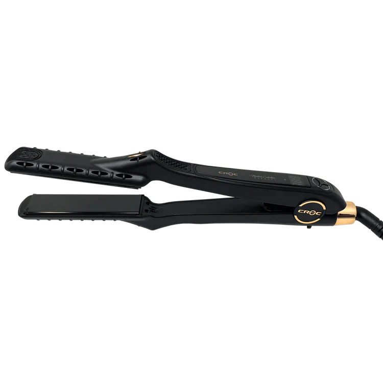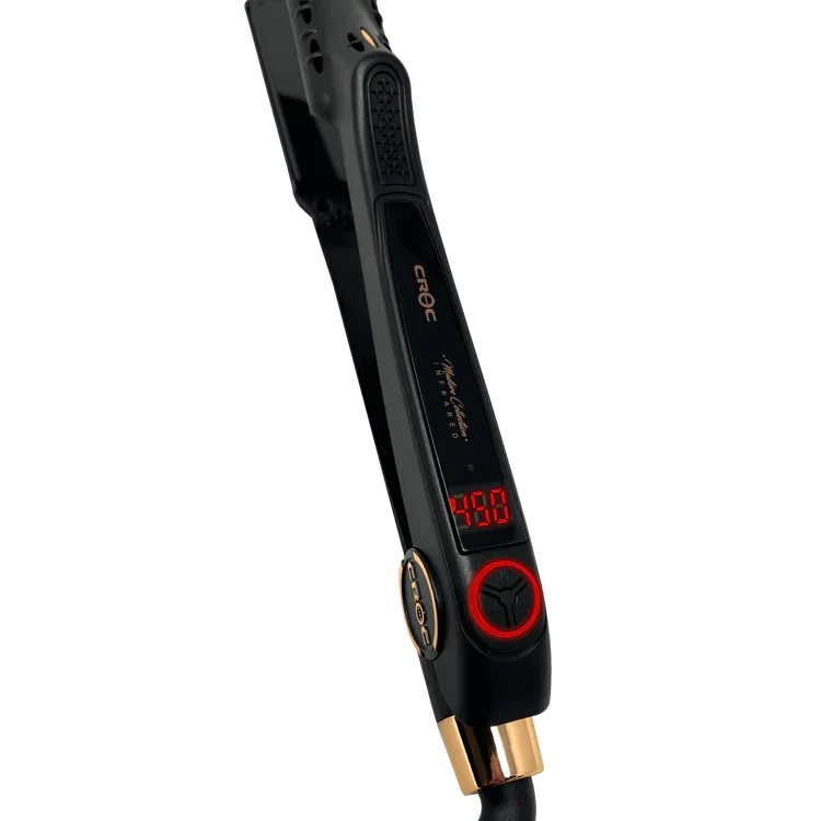 Flat Iron Designed for All Hair Types For Professional & Home Use Add a powerful styling tool to your hairdressing kit - the Masters Infrared Black Titanium Flat Iron 1" from CROC®. This reliable Flat Iron hair straightener helps you achieve flawless, long-lasting styles quickly and easily! Master Infrared Black Titanium Flat Iron 1" Hair Straightener Features: